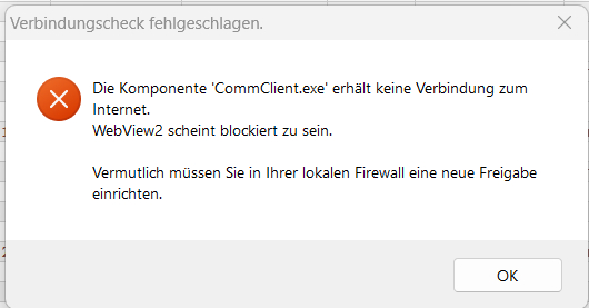 Habe auch die Firewall überprüft, aber WebView2 ist freigeschaltet.